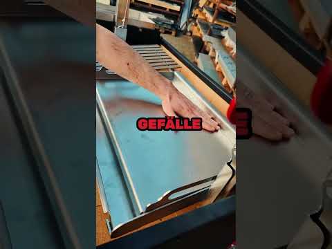 Die Plancha liegt flach auf dem sonst mit 15° geneigten Rahmen. Denn beim Planchagrillen soll das Eigenfett oder die Butter oder das Olivenöl gerade nicht abfließen.